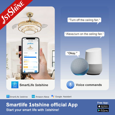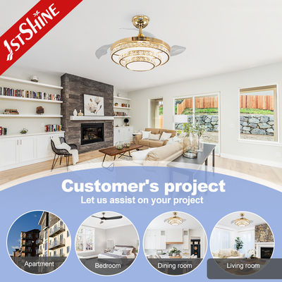220V Kristal Geri Çekilebilir Tavan Vantilatörü Işığı Uzaktan Kumandalı AC Motor