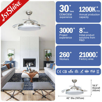 Çekilebilir tavan fanı, açıldığında 42 inç ve katlandığında 21 inç çapında. 3 akrilik bıçak otomatik olarak uzayacak ve geri çekilecek. 3 fan hızı ve LED ışığı tek uzaktan kumanda ile kontrol edilebilir.