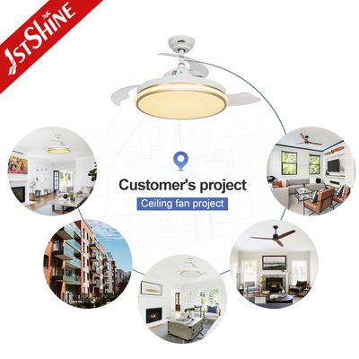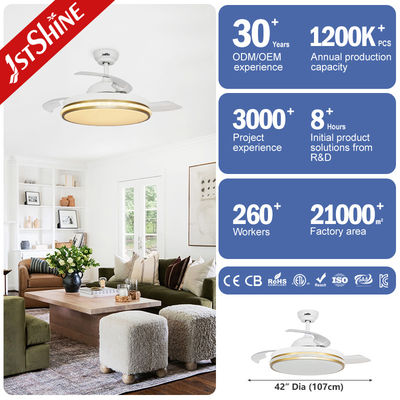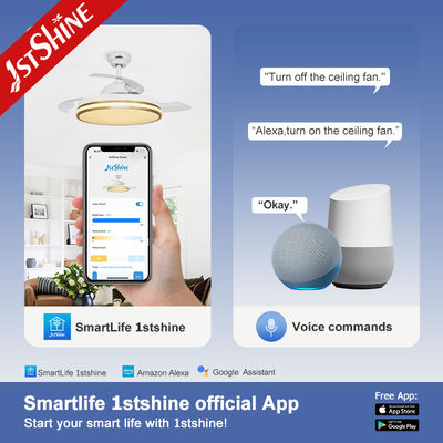 42 İnç Akıllı Küçük Geri Çekilebilir LED Işıklı Tavan Vantilatörü Yatak Odası İçin Wifi Kontrollü