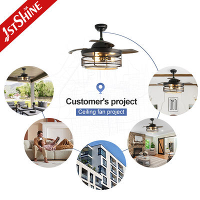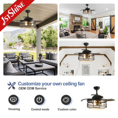 Tavan Vantilatörü Işıklı Endüstriyel Tavan Vantilatörü Geri Çekilebilir Kanatlı Vintage Kafes Avize Vantilatör