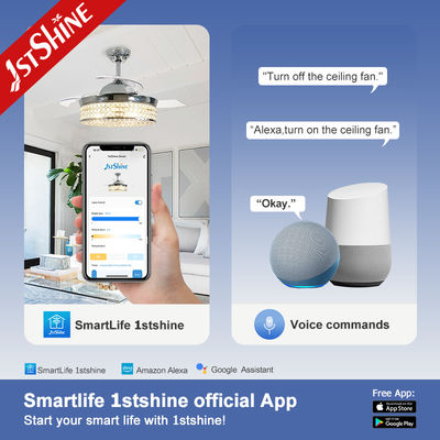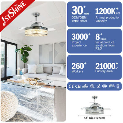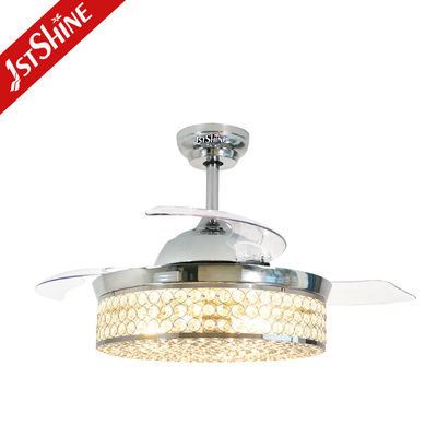 Yatak Odası İçin Geri Çekilebilir Bıçaklı DC Motorlu Düşük Enerjili Kristal Tavan Vantilatörü Işığı
