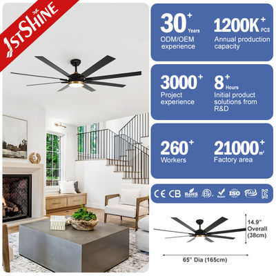 65 " Büyük Tavan Ventilatörü Mat Siyah 8 MDF Blades Dc Motor Led Tavan Ventilatörü Uzaktan Kumanda