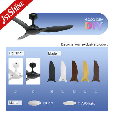 52 inç beyaz ABS bıçağı uzaktan kumandalı akıllı APP ışıksız tavan fanı