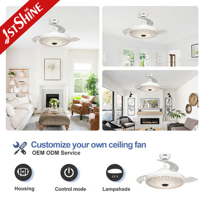 Geri çekilebilir akrilik kanatlar, vantilatör açıkken otomatik olarak açılır ve kapalıyken geri çekilerek temiz bir avize benzeri görünüm sağlar. Kristal tarzı akrilik abajur, ışık dağılımını artırır ve her türlü iç mekana lüks bir dokunuş katar.